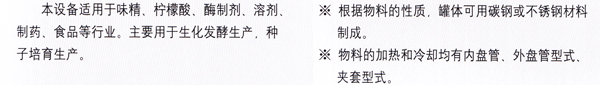 二、發(fā)酵罐主要技術(shù)參數(shù)表(供參考)